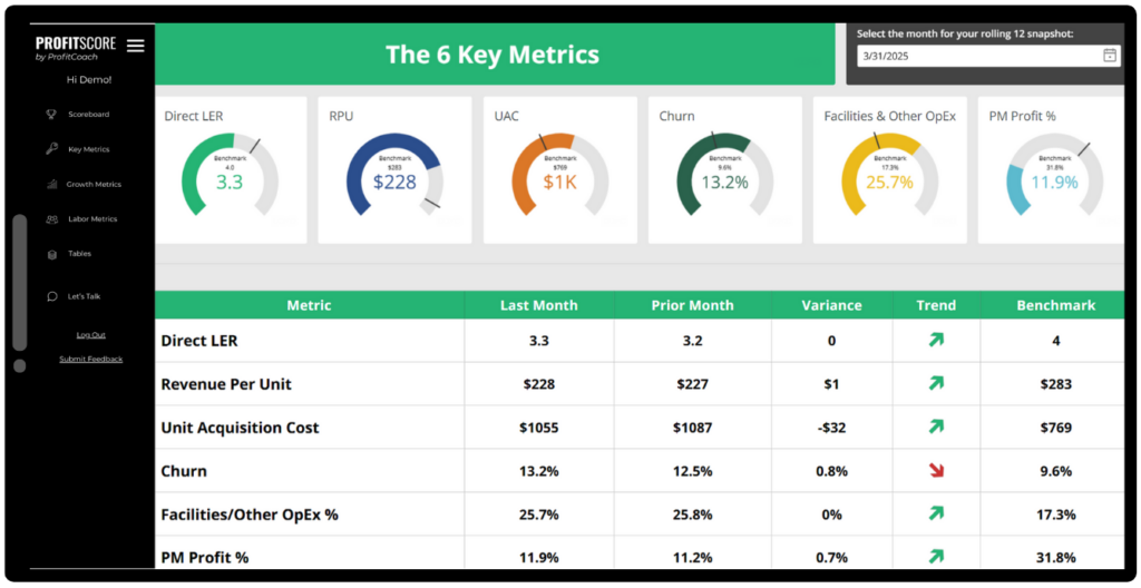 The ProfitScore dashboard is included in our Coaching programs starting at $495/month